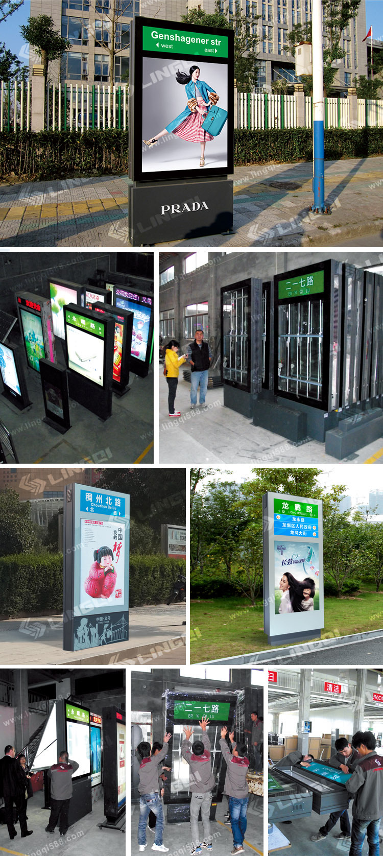 灵奇道路指示牌灯箱的特点:1.道路指引,方便市民出行;2.人机互动,便民服务,实现路况查询等功能;3.增加各类型传感器,实现人流、车流监控、环境监测、信息传达显示;4.公益宣传、传播国家方针政策;5.商业广告,增加产品的附加值及盈利点;6.具有滚动灯箱、户外液晶广告机等多种产品的传统优势。